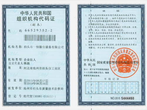 一恒組織代碼證-一恒組織代碼證-泊頭市一恒除塵設(shè)備有限公司